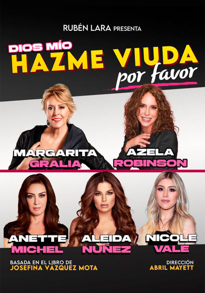 No te puedes perder de esta divertidísima obra que deja al descubierto las historias de cinco mujeres de diferentes generaciones que hablan de todo lo que les ha sucedido en plan amoroso, de trabajo, familiar y social respecto a la vida en pareja, y que piden a gritos que Dios las haga viudas.